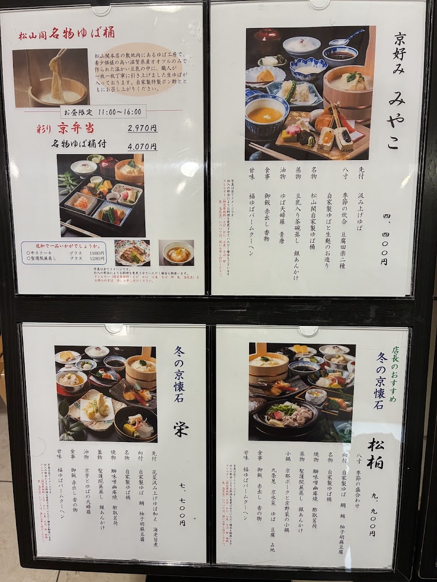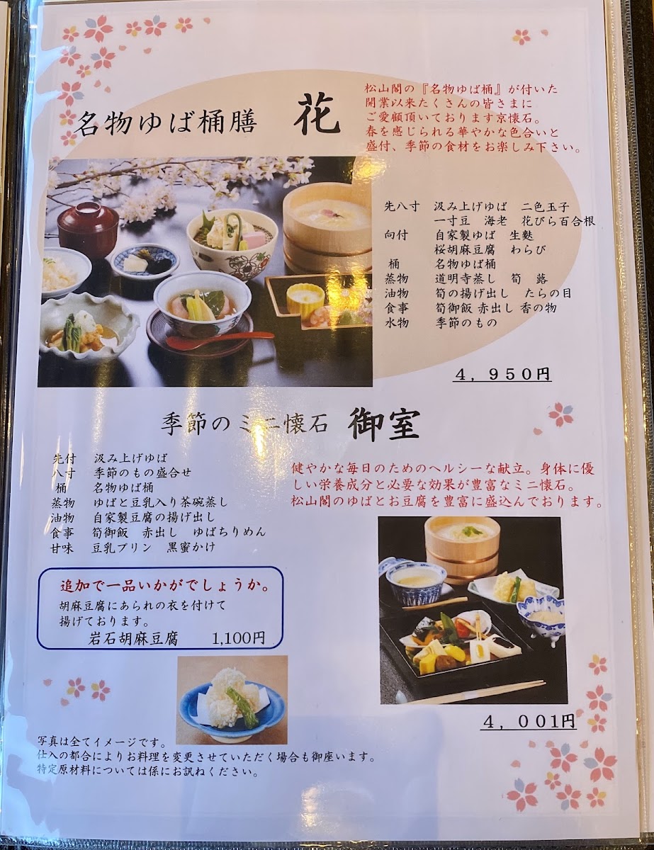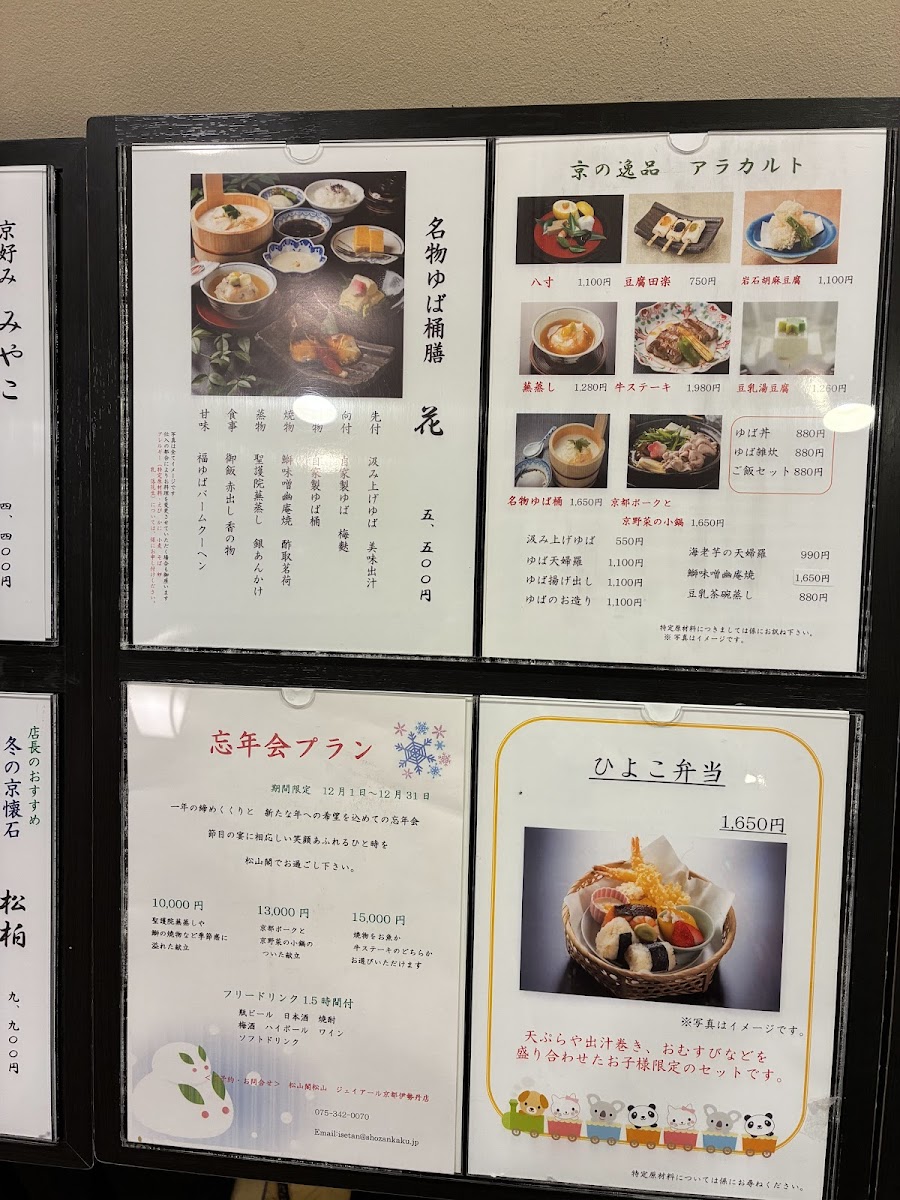 Dining at Shozankaku Matsuyama - Jr Kyoto Isetan 11F offers a refined exploration of seasonal Kyoto cuisine, highlighted by their carefully curated sets. The Seasonal Recommendation Set (季節のおすすめ膳) showcases the month’s freshest flavors, featuring the restaurant’s signature yuba bucket alongside other seasonal delicacies, all enjoyed with a panoramic view from the 11th floor. For special celebrations, the restaurant presents the Celebration Set (お祝い膳), thoughtfully arranged to suit festive occasions. Guests can choose between the 8,800 yen or 11,000 yen versions, each comprising eight meticulously prepared dishes, including the iconic yuba bucket and elaborately presented celebratory items. The menu emphasizes harmony between seasonal ingredients, traditional presentation, and the luxurious dining environment, making it an ideal choice for both casual indulgence and meaningful celebrations.